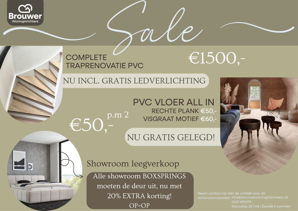 Profiteer de komende weken van geweldige acties bij Brouwer Woninginrichters!